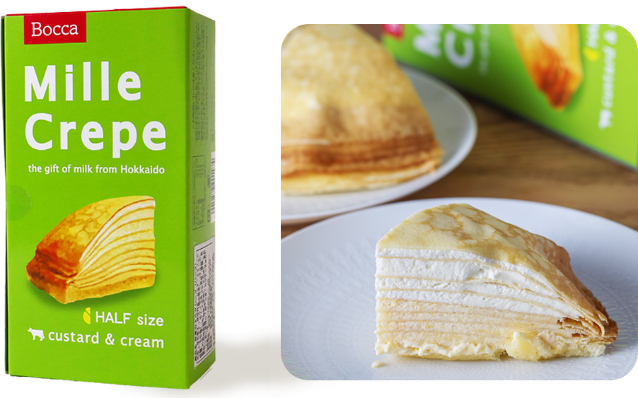 自社レストラン「洋麺茶屋牧家」の人気メニューがご家庭でもお楽しみいただけます。クレープ生地・北海道産生クリーム・カスタードクリームを丁寧に重ね、しっとりとしたクレープの優しさと濃厚な2種類のクリームが口の中でやわらかく溶け合います。